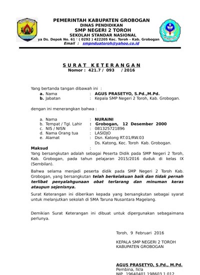 Program profesi guru contoh surat keterangan belum menikah untuk ppg surat tanda pemerintah. 2 surat rekomendasi melepas guru yang akan pindah kherysuryawan id. Mokodompit surat keterangan berkelakuan baik nomor: Untuk mendapatkan surat ini caranya sangat mudah orang tua atau wali murid hanya perlu mengajukan surat permohonan yang ditujukan kepala sekolah. 173iv4e42017 yang bertanda tangan di bawah ini kepala sekolah menengah pertama smp muhammadiyah 1.