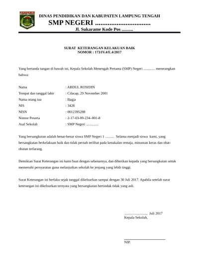 surat diatas adalah contoh surat keterangan kelakuan baik yang biasa admin gunakan untuk diberikan kepada siswa. 10 contoh surat permohonan dengan penulisan yang baik dan benar. Berbagai contoh surat dinas yang bisa anda gunakan. 422 224 sket tu kepala sekolah menengah atas negeri sman 5 kota cilegon menerangkan dengan sebenarnya bahwa. contoh surat keterangan berkelakuan baik dari kepala sekolah silahkan download surat keterangan kelakuan baik dari sekolah pada link download di akhir artikel ini surat keterangan kelakuan baik ini bisa di edit atau di sesuaikan dengan sekolah masing masing baik itu sd smp maupun sma.